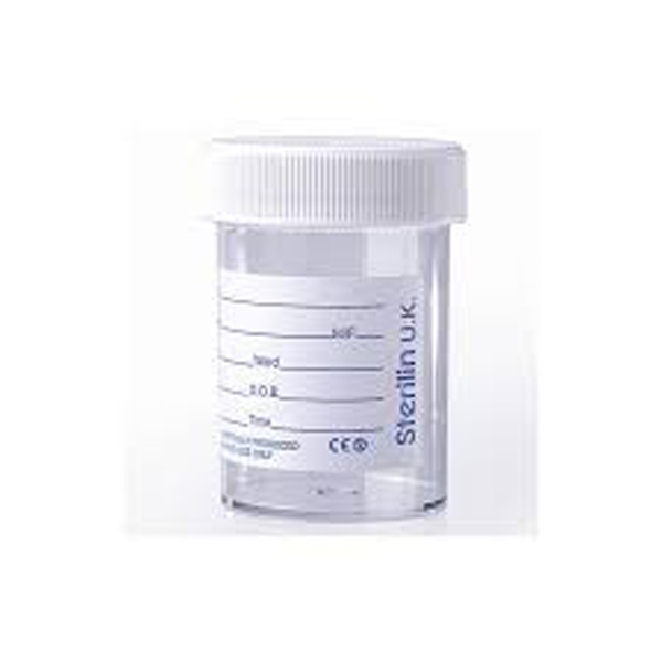 Urine sample/specimen bottle for patients when they need to provide a urine sample for testing.