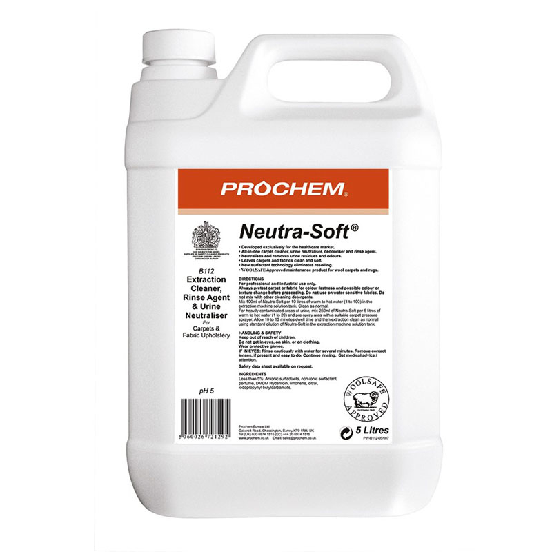 Developed exclusively for the healthcare market, Neutra-Soft is an all-in-one carpet extraction cleaner, urine neutraliser, deodoriser and rinse agent. Pale green liquid with lemon & lime fragrance. Dilution 1 to 100 or 1 to 20 pH 5