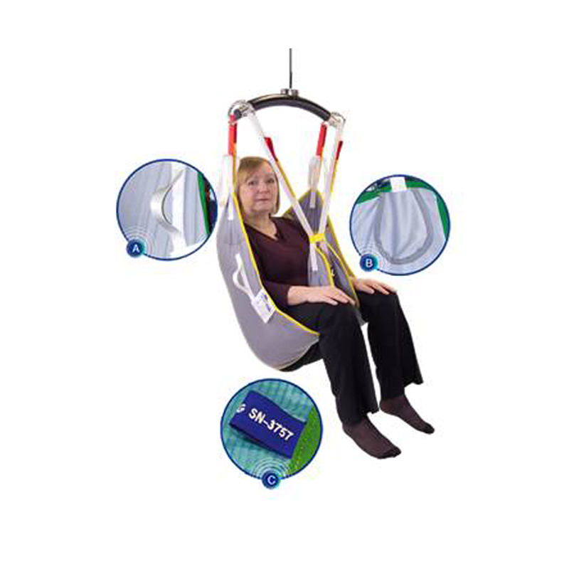 2. Identifies sling size and maximum patient weight limit, in line with our colour coded binding.
