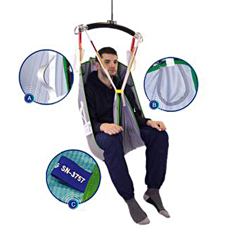 2. Identifies sling size and maximum patient weight limit, in line with our colour coded binding.