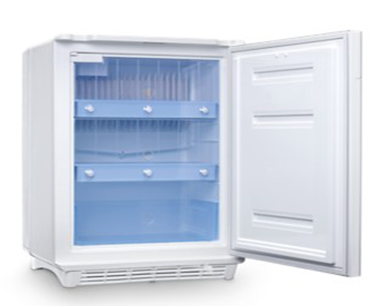 The perfect solution for hospitals and health centres to keep heat sensitive medicines between +2 °C and +8 °C. Integrated fan for constant temperature and audible warning if door left open for 20 seconds. Medicines, vaccines, etc. are safely stored in the DS series silent absorption refrigerators.