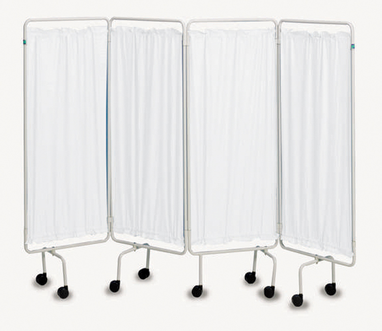 The screen frame and curtain system offers a modest privacy area, consisting of a four panel white screen frame, fitted with traditional plastic curtains.